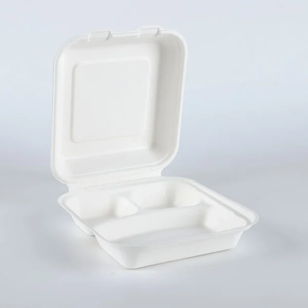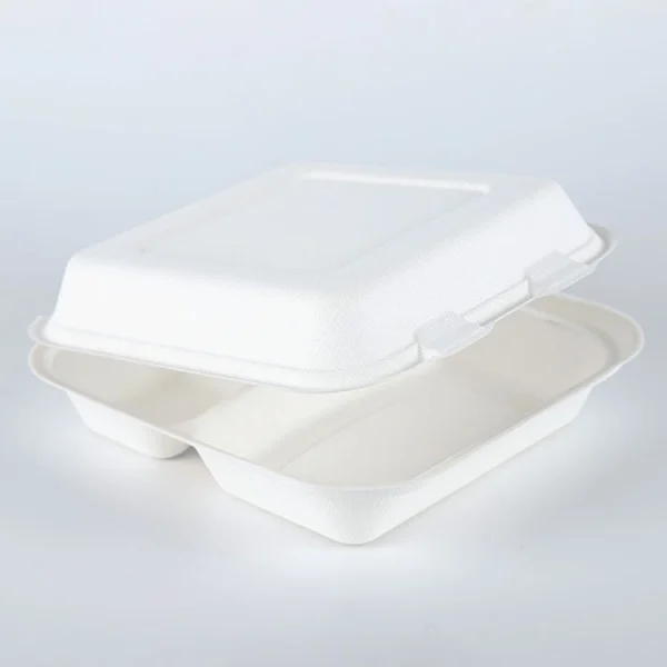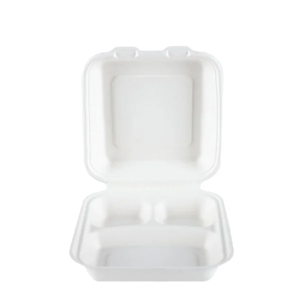 8″×8″ hinged lid containers are made from natural molded fiber, wihch is 100% biogradable and compostable. It will naturally decompose in organic soil, leaving no harmful residue behind within 6 months. Clamshell structure, microwave and freezer safe.