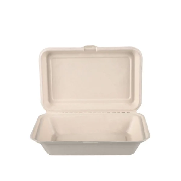 9″×6″ hinged lid containers are made from natural molded fiber, wihch is 100% biogradable and compostable. The natural color is reflective of the improved reformulation. It will naturally decompose in organic soil, leaving no harmful residue behind within 6 months. Clamshell structure, microwave and freezer safe.