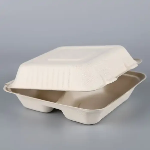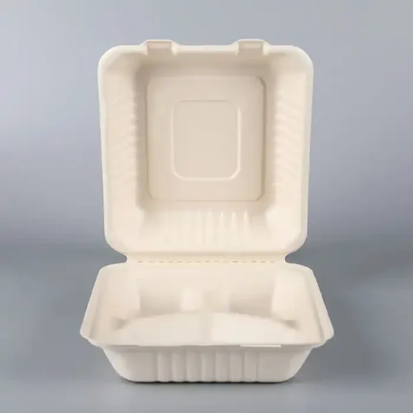 9″×9″ Large 3-Section Molded Fiber Hinged Lid Containers WPB037-3C