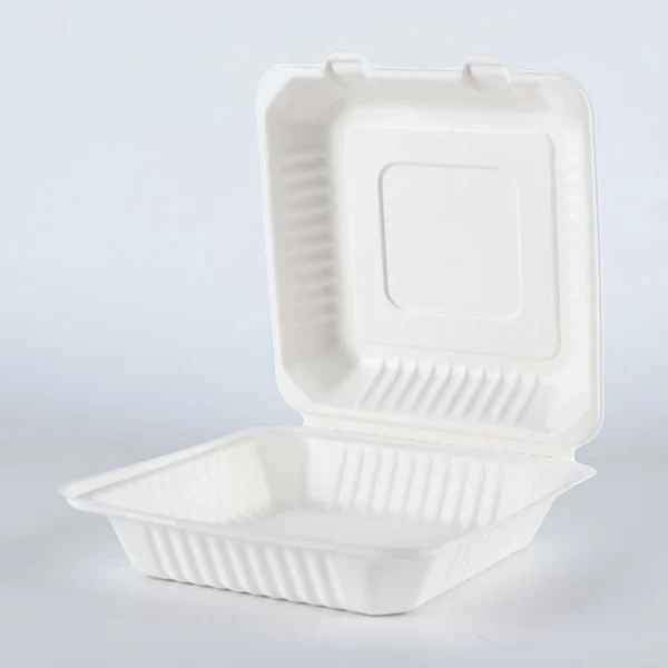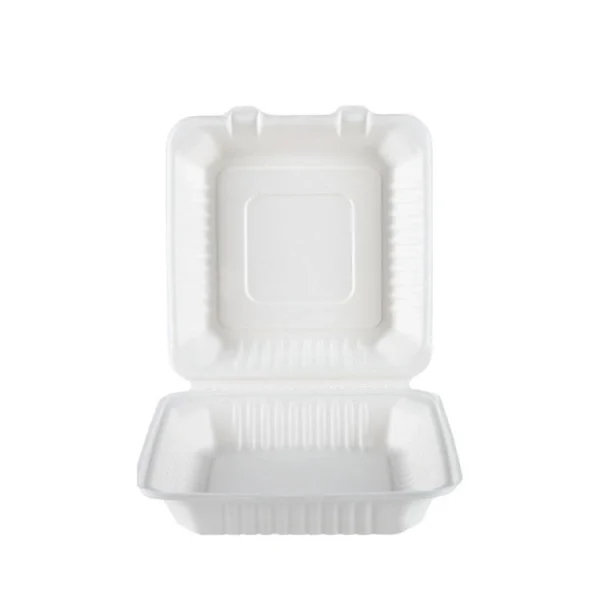 9″×9″ hinged lid containers are made from natural molded fiber, wihch is 100% biogradable and compostable. It will naturally decompose in organic soil, leaving no harmful residue behind within 6 months. Clamshell structure, microwave and freezer safe.
